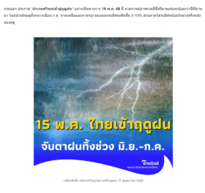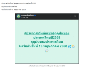 เตรียมรับมือ ประเทศไทยประกาศเริ่มฤดูฝน 15 พฤษภาคม 2568