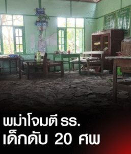 สุดสะเทือนใจ กองทัพพม่า โจมตีทางอากาศ ถล่มโรงเรียน เด็กนักเรียนดับ 20 ชีวิต May 13, 2025 Author: kimhak Categories: NEWS