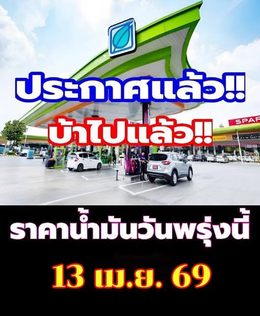 ประกาศแล้ว!! ราคาน้ำมันพรุ่งนี้ (13 เม.ย. 69)