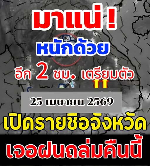 25 เมษายน 2569 พยากรณ์อากาศ 24 ชั่วโมงข้างหน้า ภาคตะวันออกเฉียงเหนือ ภาคเหนือ ภาคกลาง รวมทั้งกรุงเทพมหานครและปริมณฑล และภาคตะวันออก จะมีพายุฤดูร้อนเกิดขึ้น โดยมีลักษณะของพายุฝนฟ้าคะนอง ลมกระโชกแรง ลูกเห็บตก และฝนตกหนักบางแห่ง รวมถึงอาจมีฟ้าผ่าเกิดขึ้นได้บางพื้นที่ เนื่องจากบริเวณความกดอากาศสูงหรือมวลอากาศเย็นจากประเทศจีนแผ่ลงมาปกคลุมภาคตะวันออกเฉียงเหนือ และทะเลจีนใต้ ในขณะที่ประเทศไทยตอนบนมีอากาศร้อน ขอให้ประชาชนในบริเวณดังกล่าวระวังอันตรายจากพายุฤดูร้อน โดยหลีกเลี่ยงการอยู่ในที่โล่งแจ้ง ใต้ต้นไม้ใหญ่ สิ่งปลูกสร้าง และป้ายโฆษณาที่ไม่แข็งแรง สำหรับเกษตรกรควรเสริมความแข็งแรงให้ไม้ผล และเตรียมการป้องกันความเสียหายที่อาจเกิดขึ้นกับผลผลิตทางการเกษตรและสัตว์เลี้ยง รวมทั้งดูแลรักษาสุขภาพในช่วงที่สภาพอากาศเปลี่ยนแปลงไว้ด้วย