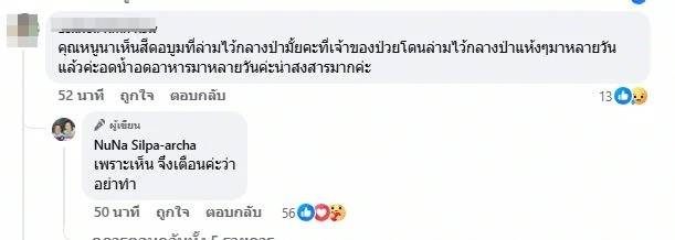 และโพสต์อีกล่าสุดว่า “เคสบูม..กำลังขอให้ปศุสัตว์แพร่เข้าไปช่วยช้างก่อนเป็นอันดับแรกค่ะ เอาอาหารไปให้ ย้ายที่ผูกเรื่องอื่นเดี๋ยวว่ากัน”