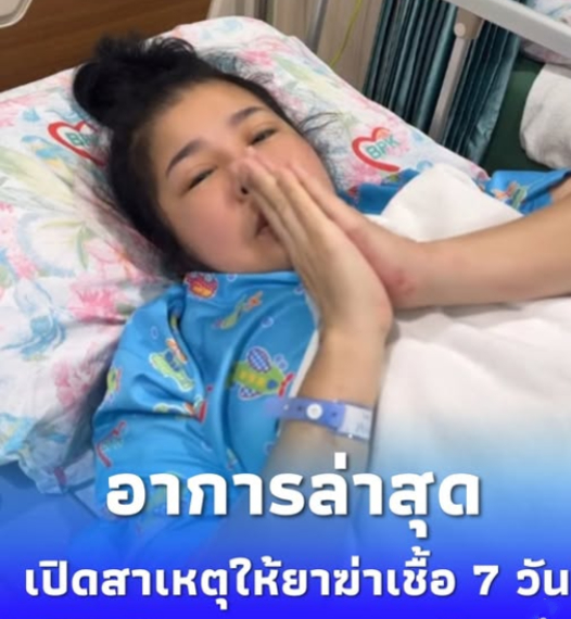 ขณะเดียวกันมีการอัปเดตคลิปเพิ่มเติมว่า “เมื่อเช้าคุณหมอเข้ามาแจ้งผลเลือดมีการติดเชื้อในกระแสเลือด ทำให้มีอาการไข้หนาวสั่น ยังต้องให้ยาฆ่าเชื้อต่อไป
