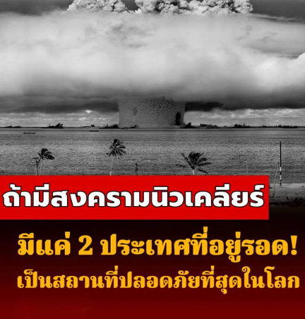 ผู้เชี่ยวชาญด้านสงครามนิวเคลียร์ เผย หากเกิดสงครามโลกครั้งที่ 3 และมีการใช้อาวุธนิวเคลียร์ มีเพียง 2 ประเทศเท่านั้นที่มีโอกาสรอดชีวิต และเป็นสถานที่ปลอดภัยที่สุดในโลกหลังการระเบิดของระเบิดปรมาณู