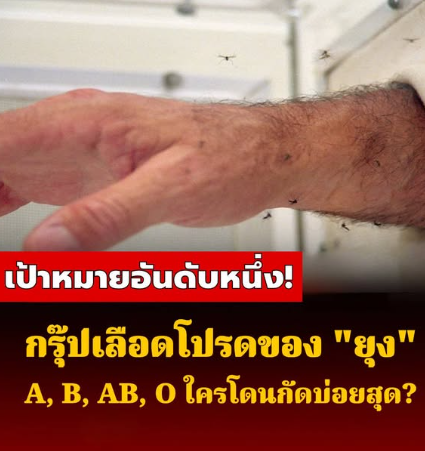 “ยุงชอบกัดคนที่มีกรุ๊ปเลือด O มากที่สุด!” ตามมาด้วยกรุ๊ป A, B และ AB ตามลำดับ