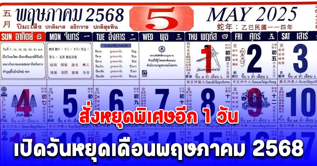 วันหยุดเดือนพฤษภาคม 2568