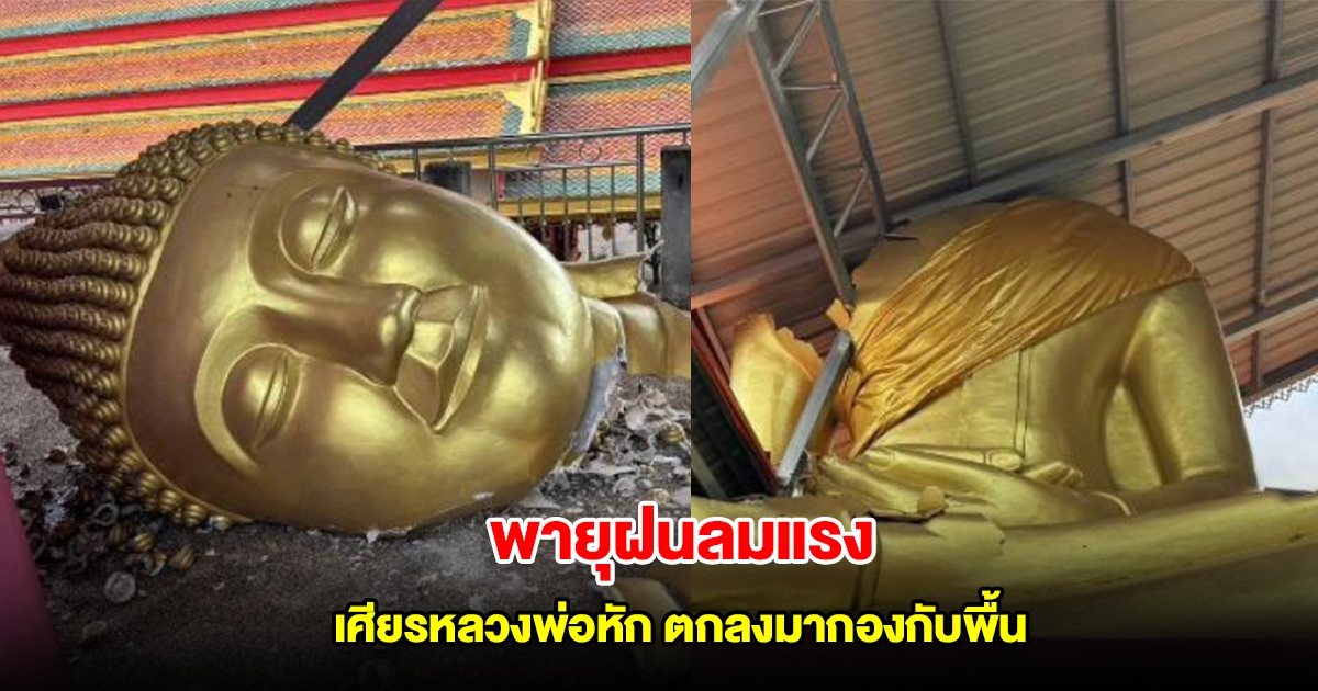 พายุฝนลมแรง พัดหลังคาวิหารทับ หลวงพ่อพุทธโสธรองค์ใหญ่ เศียรหักตกลงมากองกับพื้น
