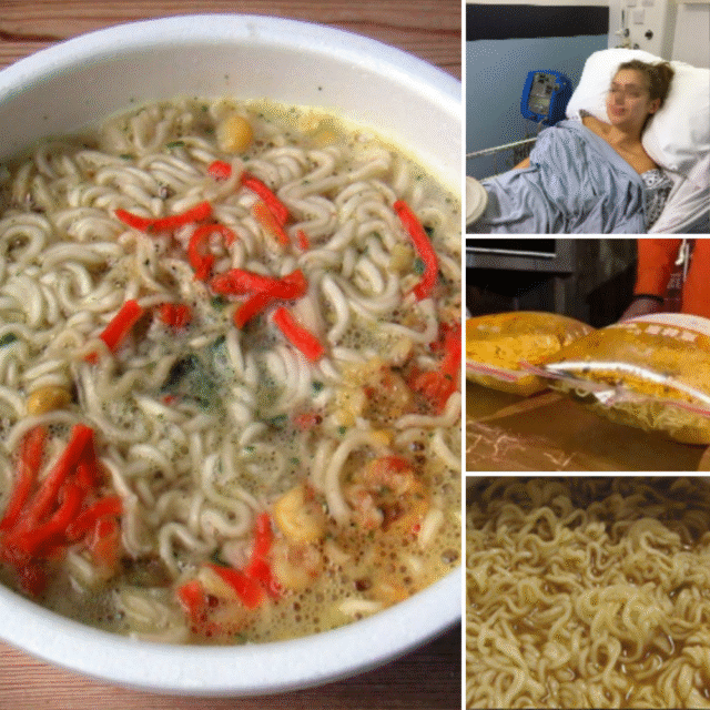 ที่เมืองหางโจว ประเทศจีน มีผู้ชายคนหนึ่งต้องเข้ารับการรักษาฉุกเฉินเนื่องจากปวดท้องมาก หลังจากที่เขาได้สแกน X-ray หมอตรวจพบว่ากระเพาะของเขาขยายตัวขึ้นผิดปกติ จึงตัดสินใจต่อท่อเพื่อนำลมภายในกระเพาะออกมา และยังพบกับของเหลวที่เหนียวข้นและเศษอาหารติดอยู่ข้างใน!ชายหนุ่มบอกว่าก่อนนอนเขาได้ทานบะหมี่กึ่งสำเร็จรูป มันเทศ และน้ำอัดลม หลังจากนั้นเขานอนไม่หลับเพราะรู้สึกแน่นท้อง เช้าวันต่อมาเขาเริ่มรู้สึกปวดท้องมากขึ้นเรื่อยๆ เมื่อหมอได้ยินดังนั้นจึงบอกว่า วัตถุดิบในบะหมี่สำเร็จรูปเมื่อผสมเข้ากับน้ำอัดลมจะทำให้ภายในกระเพาะอาหารเกิดแก๊สคาร์บอนไดออกไซด์เป็นจำนวนมาก เส้นบะหมี่เมื่อรวมกันกับมันเทศจะทำให้เป็นเศษตะกอนที่เหนียวข้น และเป็นเพราะว่าในช่วงที่เราหลับกระเพาะและลำไส้จะทำงานช้าลง จึงทำให้เกิดแก๊สสะสมเป็นจำนวนมาก จนทำให้เกิดภาวะกระเพาะขยายตัวเฉียบพลัน …แต่ว่าบะหมี่สำเร็จรูปผสมน้ำอัดลม จะทำให้เป็นถึงขนาดนี้เชียวหรือ? .. เราจึงทดลองนำบะหมี่สำเร็จรูปพร้อมเครื่องปรุงนำใส่ถุง แล้วเทน้ำอัดลมเข้าไปค่อยปิดถุงไว้ จากนั้นไม่นานถุงค่อยๆพองขึ้นจริงๆด้วย แถมยังขยายตัวจนถุงแทบจะระเบิดอยู่แล้ว! …ลองอีกที นำบะหมี่สำเร็จรูปสองห่อกับน้ำอัดลมสองขวดผสมกัน แบ่งเป็นถุงสองถุง ดูผล จากนั้นถุงทั้งสองก็พองตัวจนกลายเป็นแบบนี้ ..