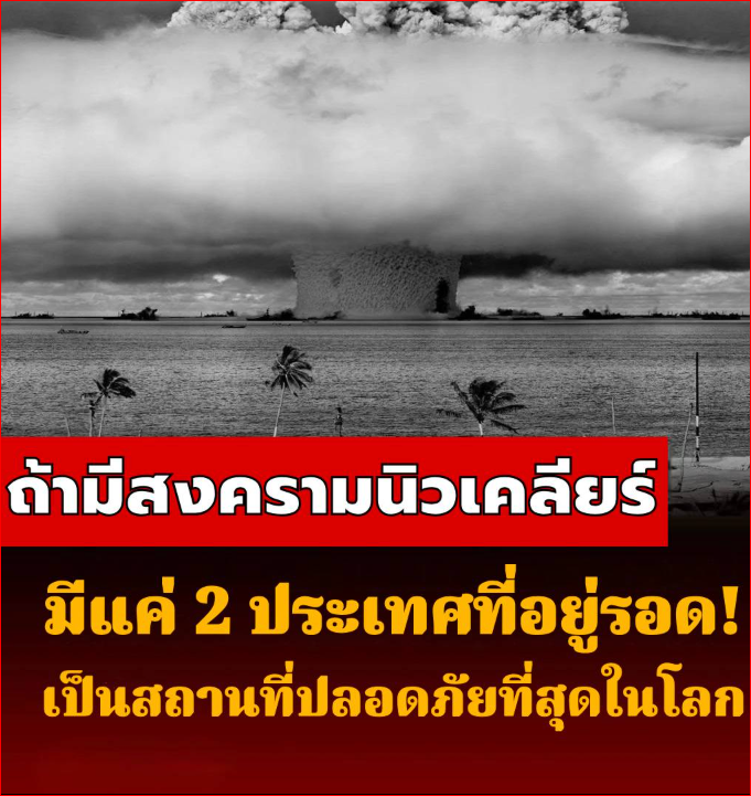 ผู้เชี่ยวชาญด้านสงครามนิวเคลียร์ เผย หากเกิดสงครามโลกครั้งที่ 3 และมีการใช้อาวุธนิวเคลียร์ มีเพียง 2 ประเทศเท่านั้นที่มีโอกาสรอดชีวิต และเป็นสถานที่ปลอดภัยที่สุดในโลกหลังการระเบิดของระเบิดปรมาณู