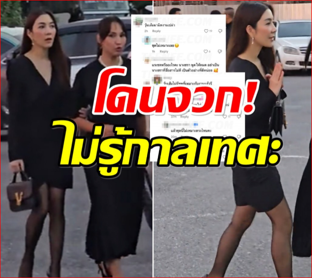 นอกจากนี้ ยังมีคนเปรียบเทียบลุคของวุ้นเส้นกับแขกคนอื่นในงานที่แต่งกายด้วยความสุภาพมิดชิดมากกว่า ส่งผลให้ดราม่าบานปลายในโซเชียล ขณะที่แฟนคลับบางส่วนก็ออกมาปกป้องว่า “ชุดก็ยังอยู่ในธีมสุภาพสีดำ แต่อาจจะไม่เรียบพอสำหรับงานศพเท่านั้น”