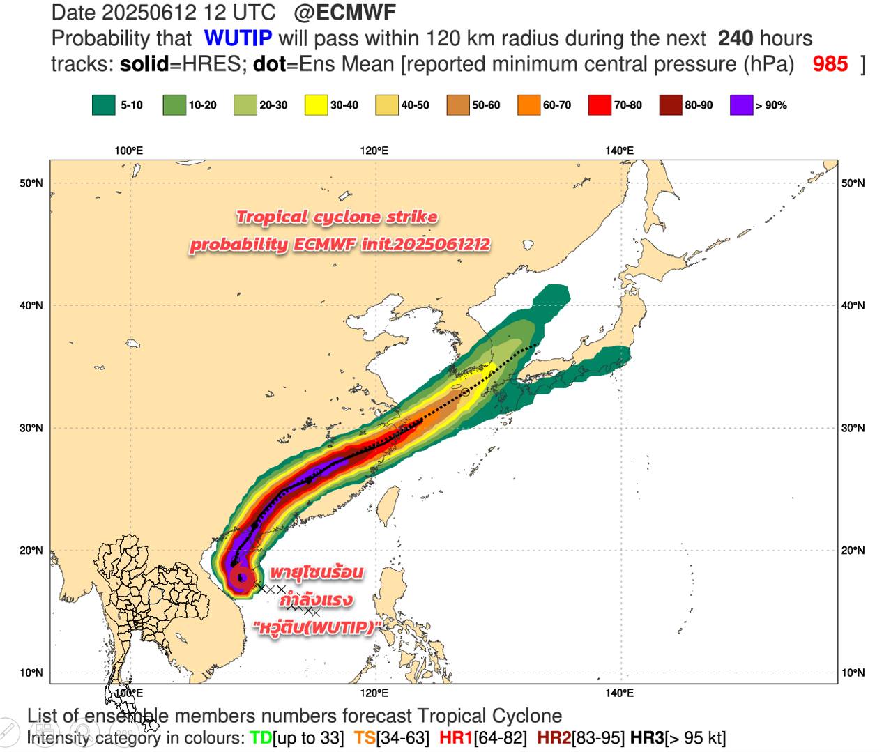 ทั้งนี้ กรมอุตุนิยมวิทยา ได้อัปเดตเส้นทางพายุโซนร้อนกำลังแรง “หวู่ติบ” เวลา 06.00 น. มีศูนย์กลางในทะเลจีนใต้ตอนบน เคลื่อนตัวทางทิศเหนือ กำลังจะเคลื่อนผ่านเกาะไหหลำวันนี้ (13 มิ.ย. 68) คาดว่าจะเคลื่อนขึ้นฝั่งประเทศจีนตอนใต้ในเช้าวันพรุ่งนี้ (14 มิ.ย.)