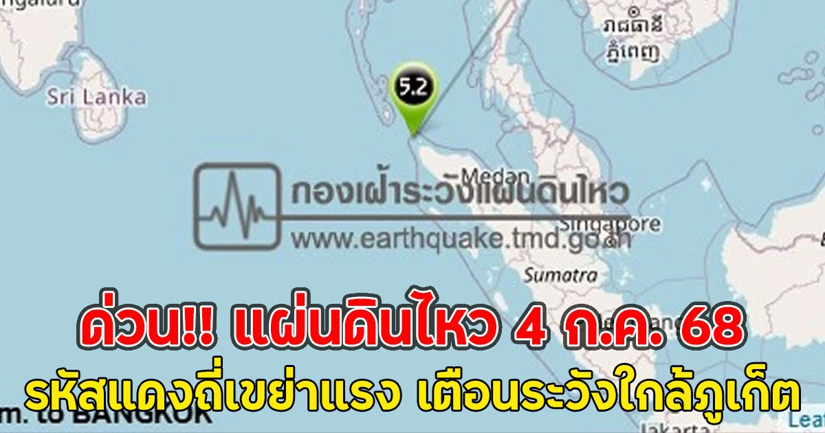 กองเฝ้าระวังแผ่นดินไหวประเทศไทย ได้ออกมาเปิดข้อมูลที่เก็บบันทึกการเกิดเหตุแผ่นดินไหวให้ทราบกันของ วันที่ 4 กรฎาคม 2568 ตั้งแต่เวลา 0.00 น. – 14.00 น. ว่า ตามเวลาที่รายงานมานั้น เกิดเหตุแผ่นดินไหวใกล้ประเทศไทยอย่างต่อเนื่อง ยังคงเป็นเขตประเทศเพื่อนบ้านอย่าง”อินโดนีเซีย” เจอพื้นที่รหัสแดงทางภาคใต้ ใกล้จังหวัด ภูเก็ต ประเทศไทย