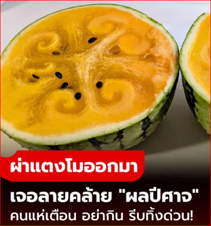 ผ่าแตงโมแล้วพบว่าเนื้อในมีลวดลายเกลียวสมมาตร ดูคล้าย “ผลปีศาจ” จากการ์ตูนวันพีซ ชาวเน็ตแห่เตือน อย่ากิน รีบทิ้งด่วน!