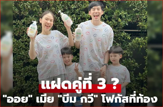 ล่าสุด ก็ได้มีคนเข้าไปคอมเมนต์ในภาพครอบครัวที่ ออย อฏิพรณ์ ภรรยาสุด บีม กวี กำลังยิ้มแช่งคู่กับสามี และลูกชายฝาแฝด น้องธีร์-น้องพีร์ เพื่อถ่ายโฆษณาให้กับผลิตภัณฑ์หนึ่ง แต่ก็ถูกโฟกัสไปที่ท้องในทันที