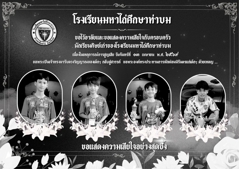 เมื่อวันที่ 14 เมษายน 2569 ที่ผ่านมา มีรายงานว่าถึงความคืบหน้าเหตุโศกนาฏกรรมช่วงเทศกาลสงกรานต์ หลังเกิดเหตุรถกระบะข้ามเลนพุ่งชนรถจักรยานยนต์ของเยาวชน 4 คน