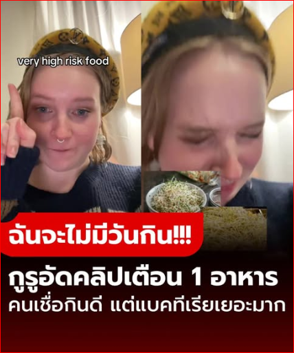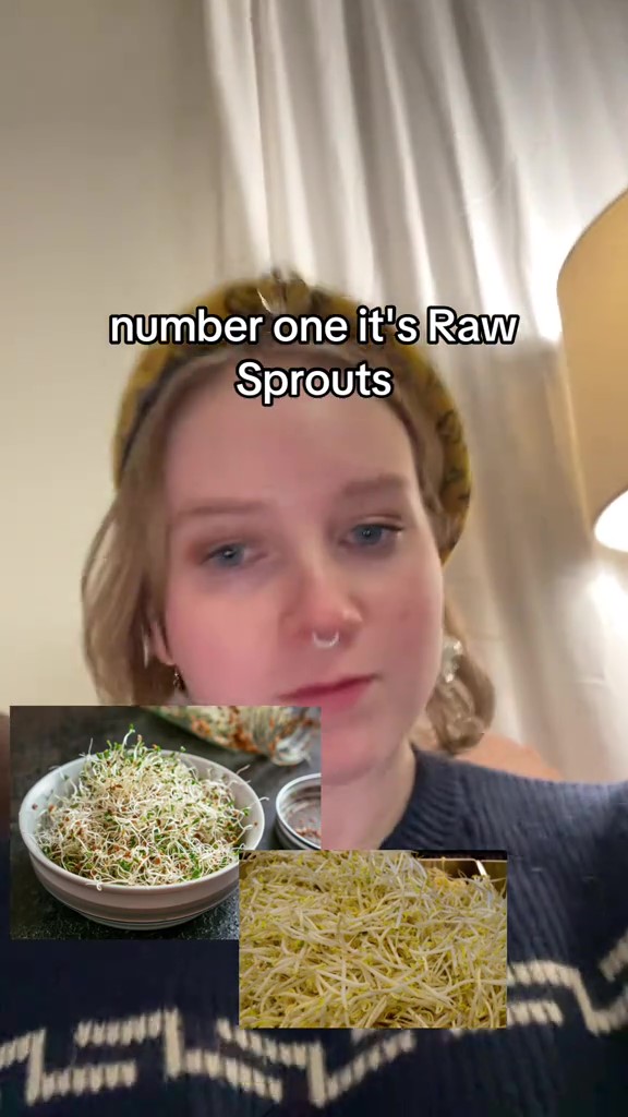 ข้อมูลนี้มาจากนักวิทยาศาสตร์ด้านอาหาร ที่โพสต์คลิปวิดีโอผ่าน TIKTOk@hydroxide ซึ่งมีผู้ติดตามหลายล้านคนที่ชมวิดีโอเกี่ยวกับความปลอดภัยด้านอาหารของเธอ โดยล่าสุดได้เตือนว่า “ต้นอ่อนดิบ” เป็นอาหารที่มีความเสี่ยงสูงมากๆ และเธอกล่าวว่าเป็นอาหารชนิดเดียวที่เธอจะหลีกเลี่ยงเสมอ