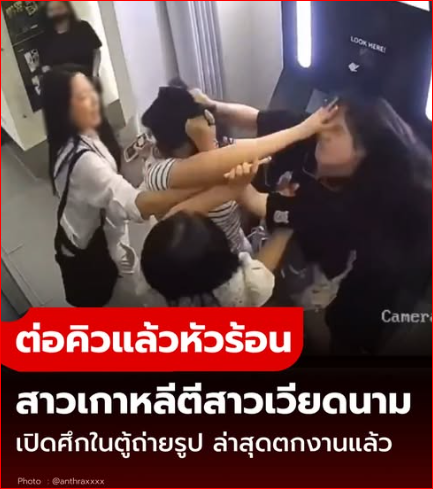 สาวเกาหลีหัวร้อนรอคิวไม่ไหว เปิดศึกหยุมหัวตบตีสาวเวียดนามในตู้ถ่ายรูป ล่าสุดถูกบริษัท “ไล่ออก”