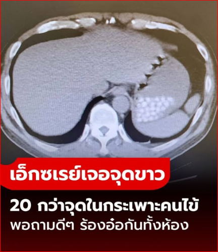 คุณหมอเล่าว่า เมื่อสัปดาห์ที่ผ่านมา เพิ่งทำการ X-Ray ช่องท้องของผู้ป่วยชายรายหนึ่ง ก่อนที่คุณหมอจะพบสิ่งผิดปกติในช่องท้อง กระเพาะอาหาร ลักษณะเป็นจุดสีขาวโปร่งแสง มากกว่า 20 จุด กระจุกรวมอยู่ทั่วช่องท้อง และไม่รู้ว่าคืออะไร