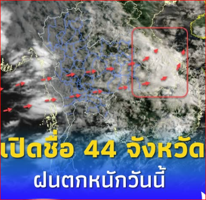 เปิดรายชื่อ 44 จังหวัด ระวังอันตรายฝนตกหนักวันนี้ น้ำท่วมฉับพลัน