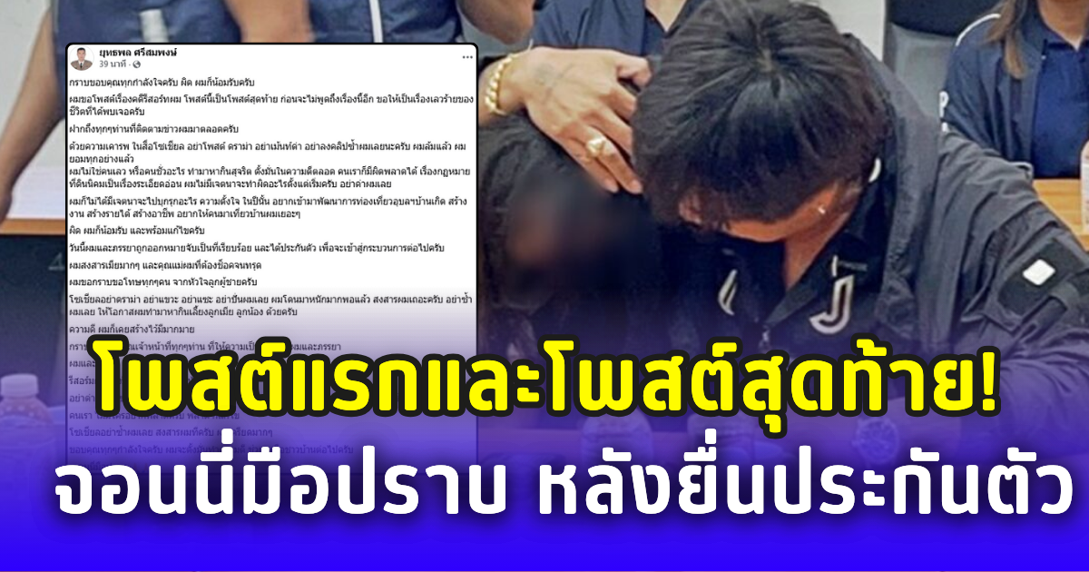 วันที่ 14 สิงหาคม 2568 หลังจากที่ จอนนี่ มือปราบ และภรรยา ยื่นหลักทรัพย์ประกันตัวเป็นเงินสดคนละ 2 แสนบาท ล่าสุด จอนนี่มีความเคลื่อนไหวผ่านเฟซบุ๊ก ยุทธพล ศรีสมพงษ์ โดยโพสต์ข้อความขอบคุณทุกกำลังใจ พร้อมยอมรับความผิดพลาด และระบุว่าโพสต์นี้เป็นโพสต์สุดท้ายเกี่ยวกับคดีรีสอร์ต