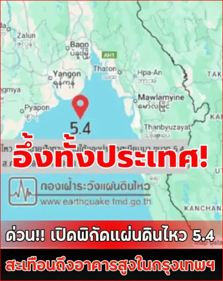 หลังจาก กองเฝ้าระวังแผ่นดินไหว กรมอุตุนิยมวิทยา รายงานเกิดแผ่นดินไหว นอกชายฝั่งทางตอนใต้ของประเทศเมียนมา ทางทิศตะวันตกเฉียงใต้ของ อ.แม่สอด จ.ตาก ประมาณ 211 กม. ขนาด 5.4 ลึก 10 กิโลเมตร