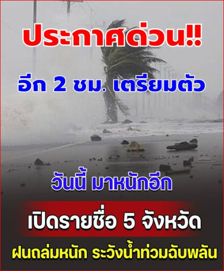 ประกาศแล้ว เปิดรายชื่อ 5 จังหวัด ฝนถล่มหนัก ระวังน้ำท่วมฉับพลัน