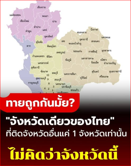 เมื่อเราพูดถึงจังหวัดต่างๆ ในประเทศไทย ส่วนใหญ่ก็มักจะมี “เพื่อนบ้าน” อยู่หลายจังหวัด เช่น กรุงเทพฯ ติดทั้ง นนทบุรี, ปทุมธานี, สมุทรปราการ, นครปฐม และ สมุทรสาคร หรือจังหวัดใหญ่ๆอย่าง นครราชสีมา ก็ติดจังหวัดรอบข้างถึง 8 จังหวัดเลยทีเดียว แต่คุณรู้หรือไม่ว่า มีอยู่เพียงจังหวัดเดียวในประเทศไทยที่มี “เพื่อนบ้าน” เป็นจังหวัดอื่นแค่จังหวัดเดียวเท่านั้น
