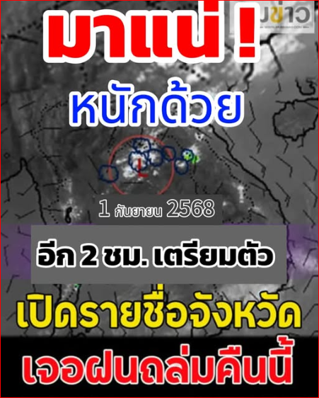 ช่วงสัปดาห์นี้ (1-7 ก.ย.68) ประเทศไทยยังมีฝนตกต่อเนื่องและมีฝนตกหนักบางแห่ง บริเวณภาคเหนือ ภาคอีสาน ภาคกลาง ภาคตะวันออก กทม.และปริมณฑล อิทธิพลจากร่องมรสุมที่พาดผ่าน และมรสุมตะวันตกเฉียงใต้ที่ยังคงพัดปกคลุม ยังต้องเฝ้าระวังน้ำหลากจากฝนที่ยังตกสะสมกัน