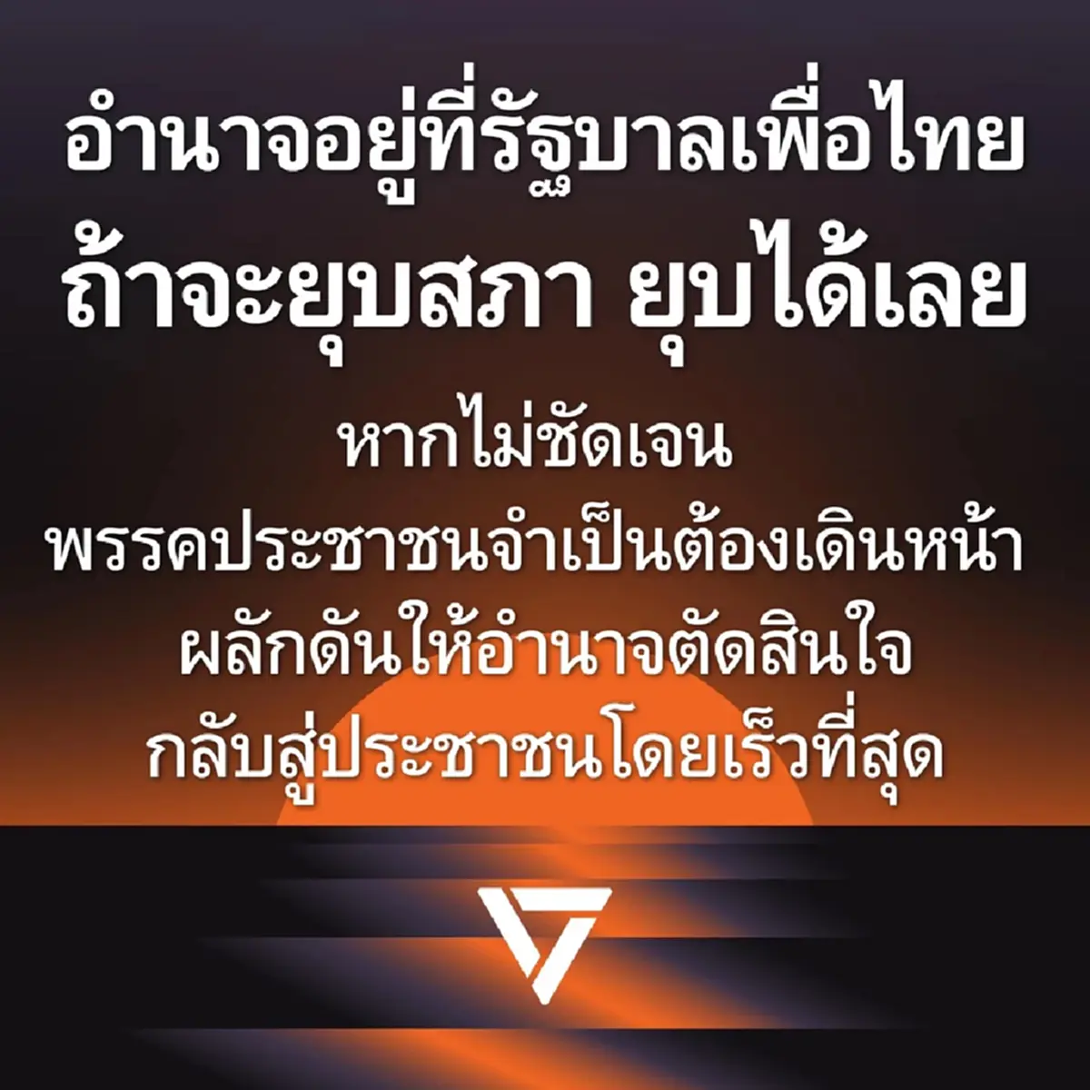 [ อำนาจอยู่ที่รัฐบาลเพื่อไทย ถ้าจะยุบสภา ยุบได้เลย หากไม่ชัดเจน พรรคประชาชนจำเป็นต้องเดินหน้าผลักดันให้อำนาจตัดสินใจกลับสู่ประชาชนโดยเร็วที่สุด ]