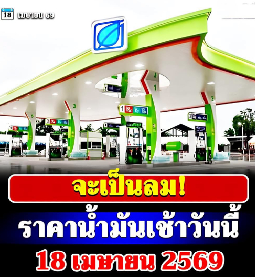 ประกาศแจ้ง! ราคาน้ำมันเช้าวันนี้ 18 เมษายน 2569 เบนซิน-ดีเซล-แก๊สโซฮอล์ ลิตรละเท่าไหร่