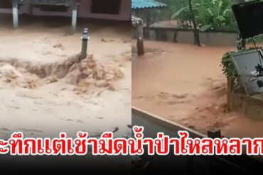 ด่วน! น่าน ระทึกแต่เช้ามืดน้ำป่าไหลหลาก เข้าท่วมบ้านเรือนประชาชน(คลิป)