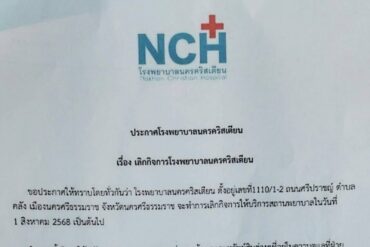 วันที่ 9 กรกฎาคม 2568 ที่ผ่านมา ประกาศโรงพยาบาลนครคริสเตียน เรื่องเลิกกิจการโรงพยาบาลนครคริสเตียน ขอประกาศให้ทราบโดยทั่วกัน โรงพยาบาลนครคริสเตียน ตั้งอยู่เลขที่ 1110/1-2 ตำบลศรีปราชญ์ อำเภอคลัง เมืองนครศรีธรรมราช จังหวัดนครศรีธรรมราช จะทำการเลิกกิจการให้บริการสถานพยาบาลในวันที่ 1 สิงหาคม 2568 เป็นต้นไป ประกาศดังกล่าว โรงพยาบาลนครคริสเตียน (หมอจำรัส) กำเนิดและการก่อตั้ง พ.ศ….