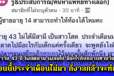 น้าสาววัย 43 ปี โพสต์ถาม เผลอไป มีอะไรกับหลานชายวัย 14 ปี ตอนนี้ประจำเดือนไม่มา กังวลกลัวจะท้อง