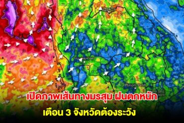 สะพรึง! เปิดภาพเส้นทางมรสุมเข้าไทย เจอฝนตกหนัก เตือน 3 จังหวัดต้องระวัง