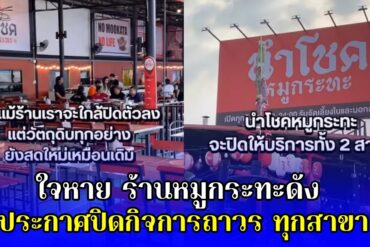 ร้านหมูกระทะชื่อดัง นำโชคหมูกระทะ ประกาศปิดกิจการถาวร 2 สาขา ประกาศผ่านเพจอย่างเป็นทางการว่า เตรียมปิดกิจการทั้ง 2 สาขา ได้แก่ สาขานวนคร และสาขาสุขุมวิท โดยจะเปิดให้บริการอีกเพียง 10 วันสุดท้ายเท่านั้น ก่อนจะปิดตัวลงอย่างถาวรในวันที่ 31 พฤษภาคมนี้ ในโพสต์ยังเชิญชวนลูกค้าที่ยังคิดถึงรสชาติและบรรยากาศของร้าน มาร่วมอิ่มอร่อยเป็นครั้งสุดท้ายกับโปรโมชันบุฟเฟต์ราคา 229 บาท ซึ่งจะให้บริการถึงวันสุดท้ายที่ร้านยังเปิดอยู่ 10 วันสุดท้ายก่อนจะปิดร้านทั้ง…