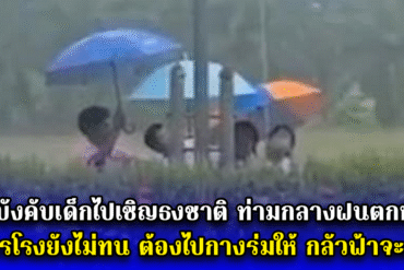 ดราม่า ผอ.บังคับเด็กไปเชิญธงชาติ ท่ามกลางฝนตกหนัก ภารโรงยังไม่ทน ต้องไปกางร่มให้ กลัวฟ้าจะผ่า