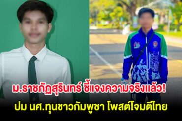ม.ราชภัฏสุรินทร์ ชี้แจงความจริงเเล้ว! ปม นศ.ทุนชาวกัมพูชา โพสต์โจมตีไทย