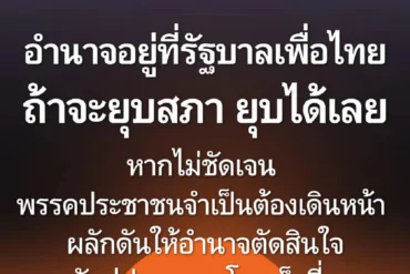 พรรคประชาชน ถึง รัฐบาลพรรคเพื่อไทย ถ้าจะยุบสภา ยุบได้เลย หากไม่ชัดเจน พรรคประชาชนจำเป็นต้องเดินหน้าผลักดันให้อำนาจตัดสินใจกลับสู่ประชาชนโดยเร็วที่สุด พรรคประชาชน ออกแถลงการณ์ล่าสุด ระบุ [ อำนาจอยู่ที่รัฐบาลเพื่อไทย ถ้าจะยุบสภา ยุบได้เลย หากไม่ชัดเจน พรรคประชาชนจำเป็นต้องเดินหน้าผลักดันให้อำนาจตัดสินใจกลับสู่ประชาชนโดยเร็วที่สุด ] วันนี้ชัดเจนแล้วว่าประชาชนต้องการการยุบสภาและเลือกตั้งใหม่ ซึ่งเป็นข้อเรียกร้องที่พรรคประชาชนเสนอต่อสังคมมาโดยตลอด นับแต่วันที่มีการเผยแพร่คลิปเสียงระหว่างแพทองธาร ชินวัตร อดีตนายกรัฐมนตรี และ ฮุน เซน ว่าการยุบสภาคือทางออกที่ดีที่สุดสำหรับประเทศ เป็นการคืนอำนาจให้ประชาชนได้ตัดสินใจเลือกรัฐบาลใหม่ที่มีความชอบธรรม…